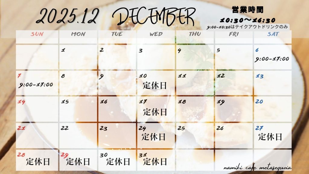 6日&7日のみ9:00~17:00(9:00~10:30はテイクアウトMENUのみ)